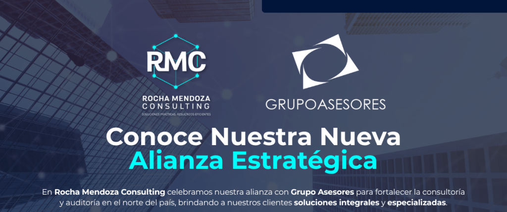 En Rocha Mendoza Consulting anunciamos con entusiasmo nuestra alianza profesional con Grupo Asesores, Firma con más de 34 años de experiencia en contabilidad, auditoría, fiscal, recursos humanos, legal y financiero, con base en Monterrey. Esta colaboración nos permite fortalecer y ampliar el alcance de nuestros servicios especializados para clientes en la zona norte del país, manteniendo siempre la atención personalizada y la excelencia técnica que nos caracteriza.